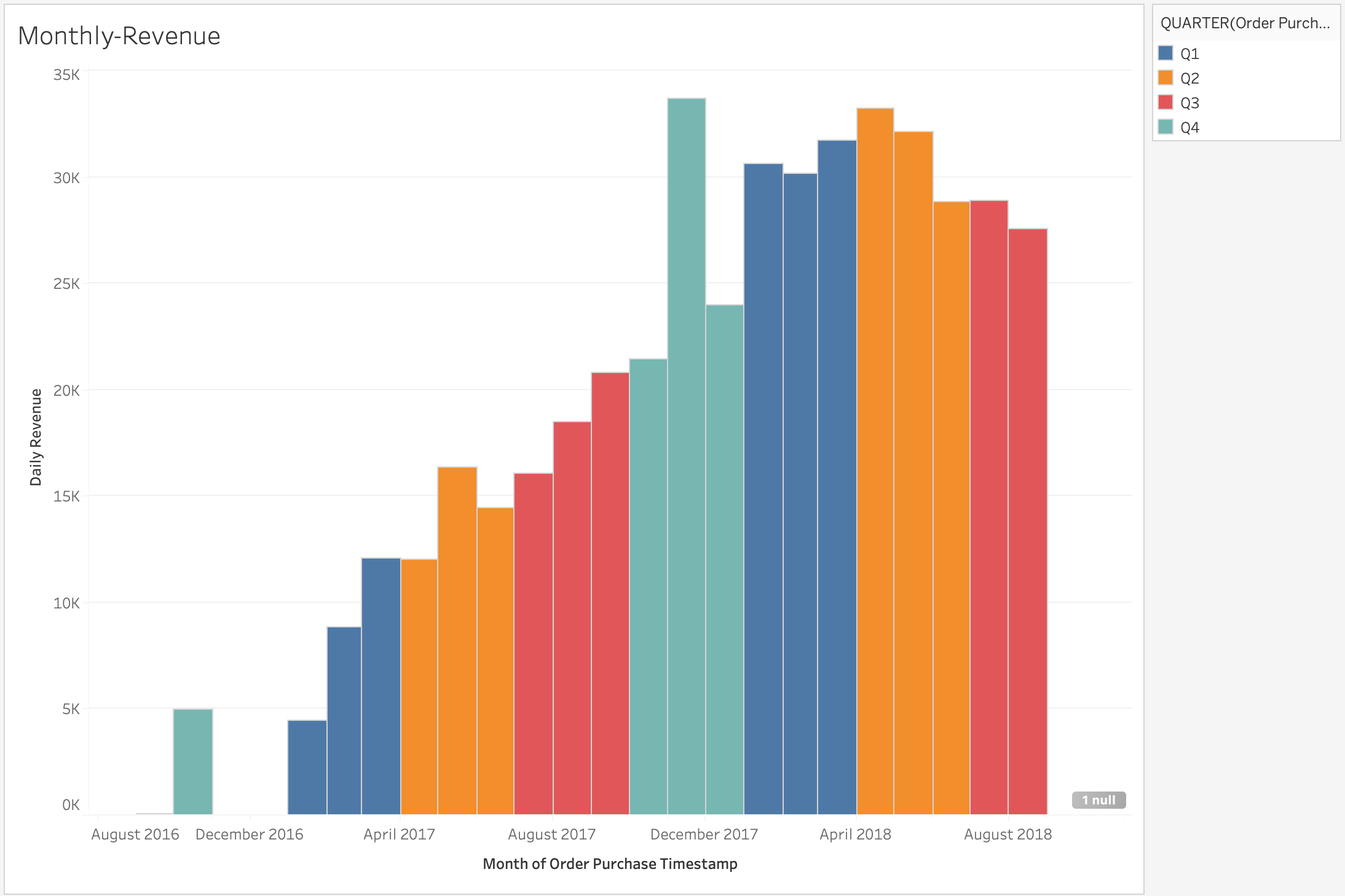 This view shows whether Q3 2018 started slow or fell off partway through — useful context for your stagnation story. If you build it, consider placing it alongside the monthly revenue chart in your dashboard.